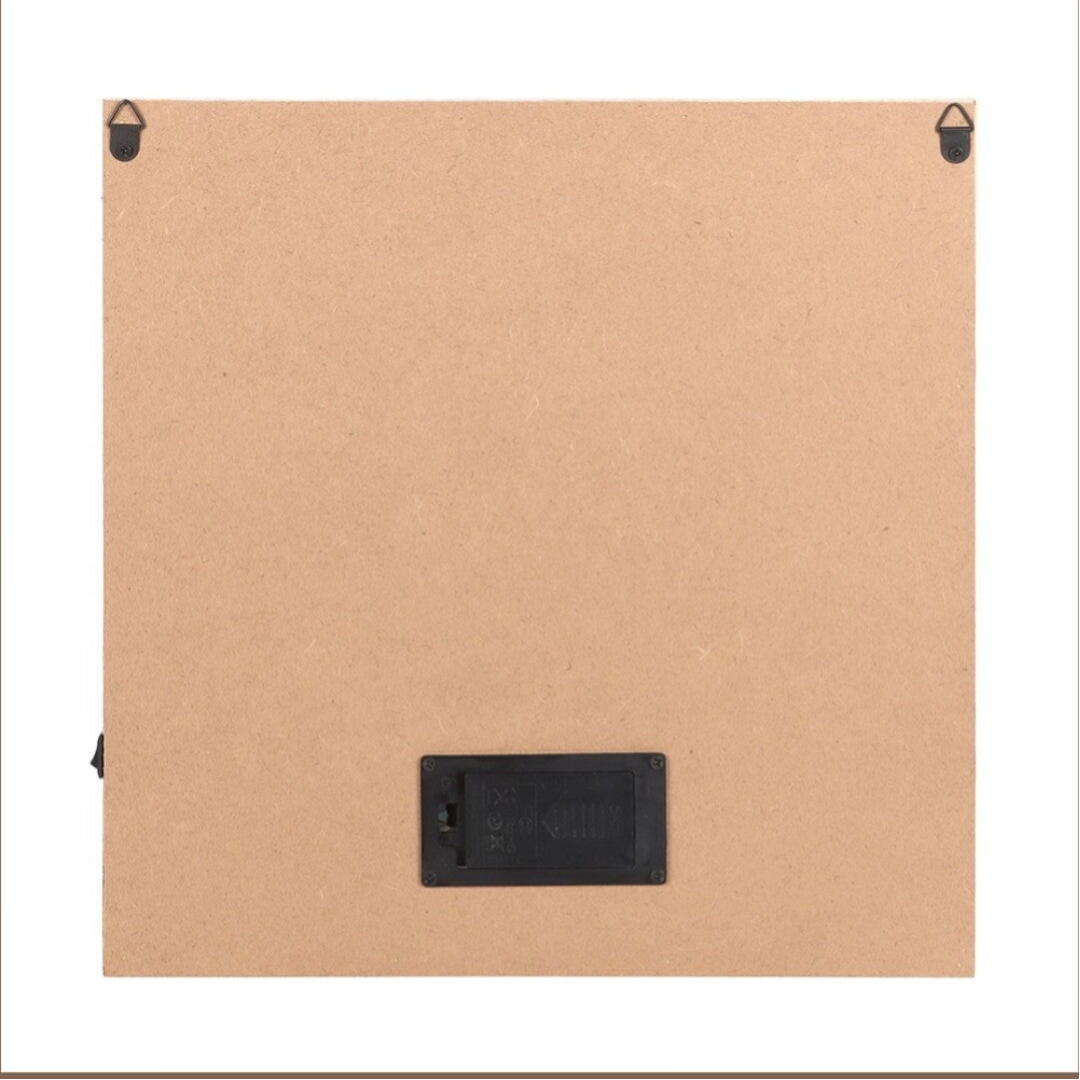 The frame is 30 x 30cm and two AA batteries are required (not included). There is also an on/off button to the side of the canvas.